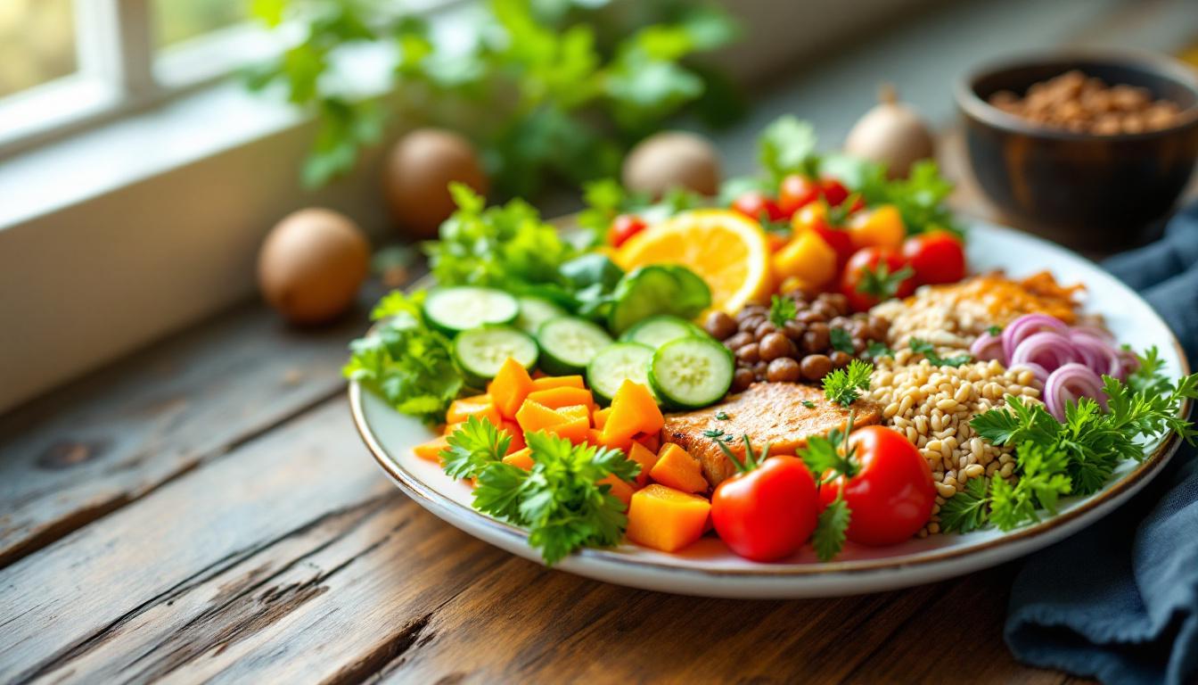 - Protéines maigres : poulet grillé, poisson, légumineuses
